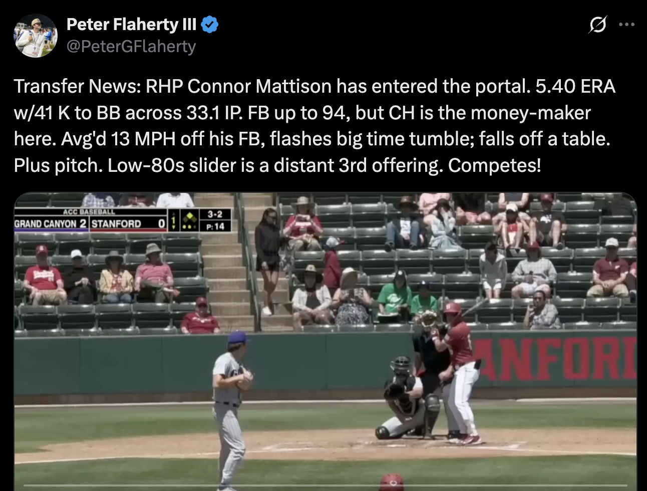 Peter Flaherty of Baseball America shared the following when Mattison entered the portal: